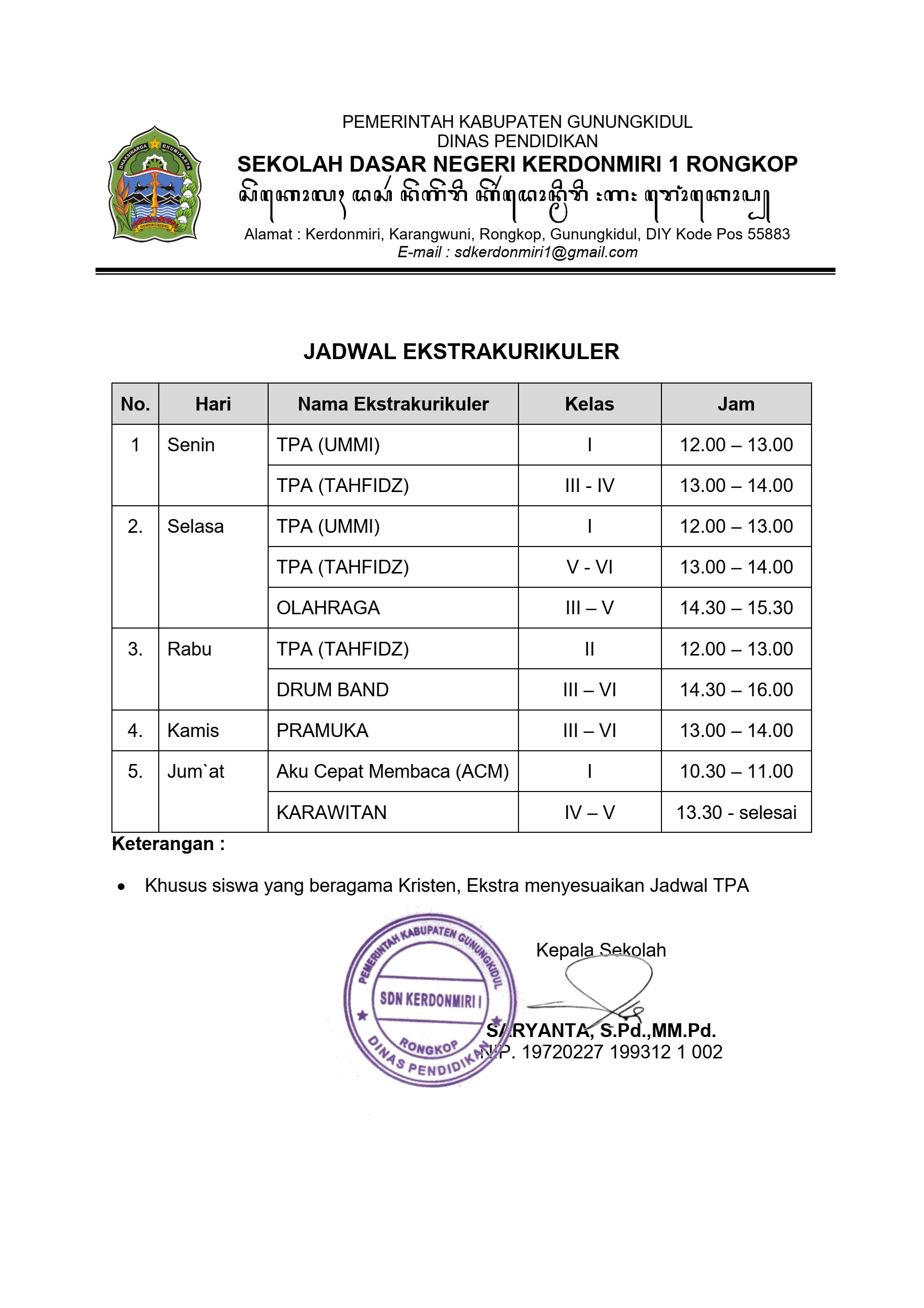 Jadwal Ekstrakurikuler Tahun pelajaran 2023/2024Jadwal Ekstrakurikuler Tahun pelajaran 2023/2024 |